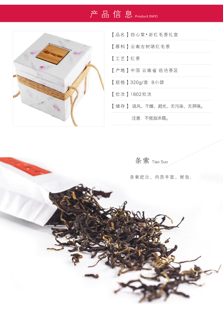 四心堂岩红 邦红古树晒红 1602批次 40g*8 礼盒装