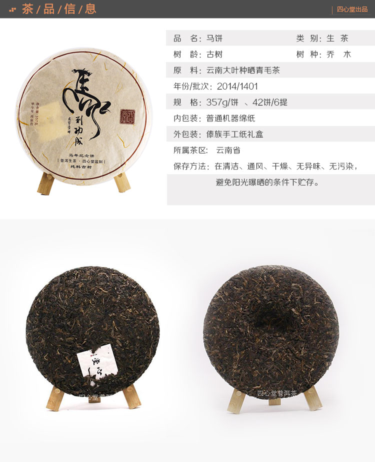 马年纪念饼 普洱生茶 2014年春 357克