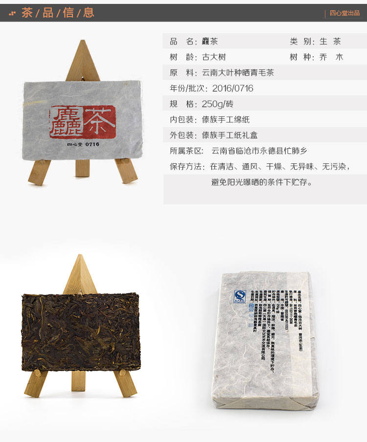 普洱茶 生茶 0716 麤茶 乔木 250g 砖茶 四心堂