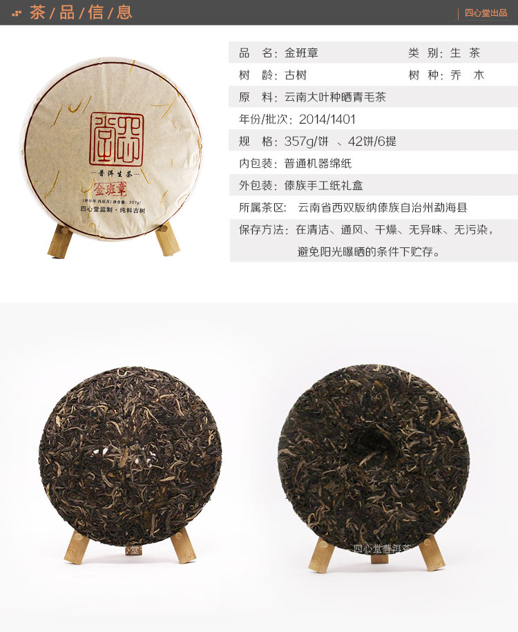 14年金班章 纯料古树 春茶 云南普洱茶 357克生茶