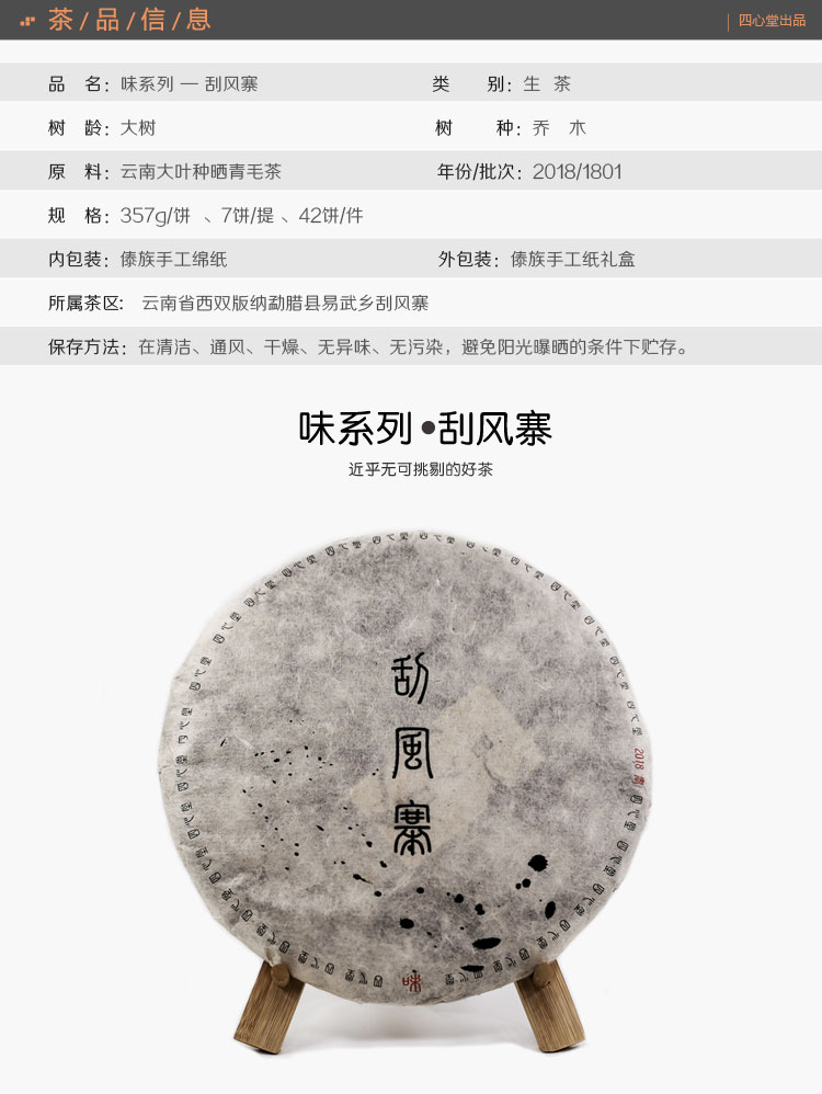 四心堂1801批次 味系列 刮风寨 357g