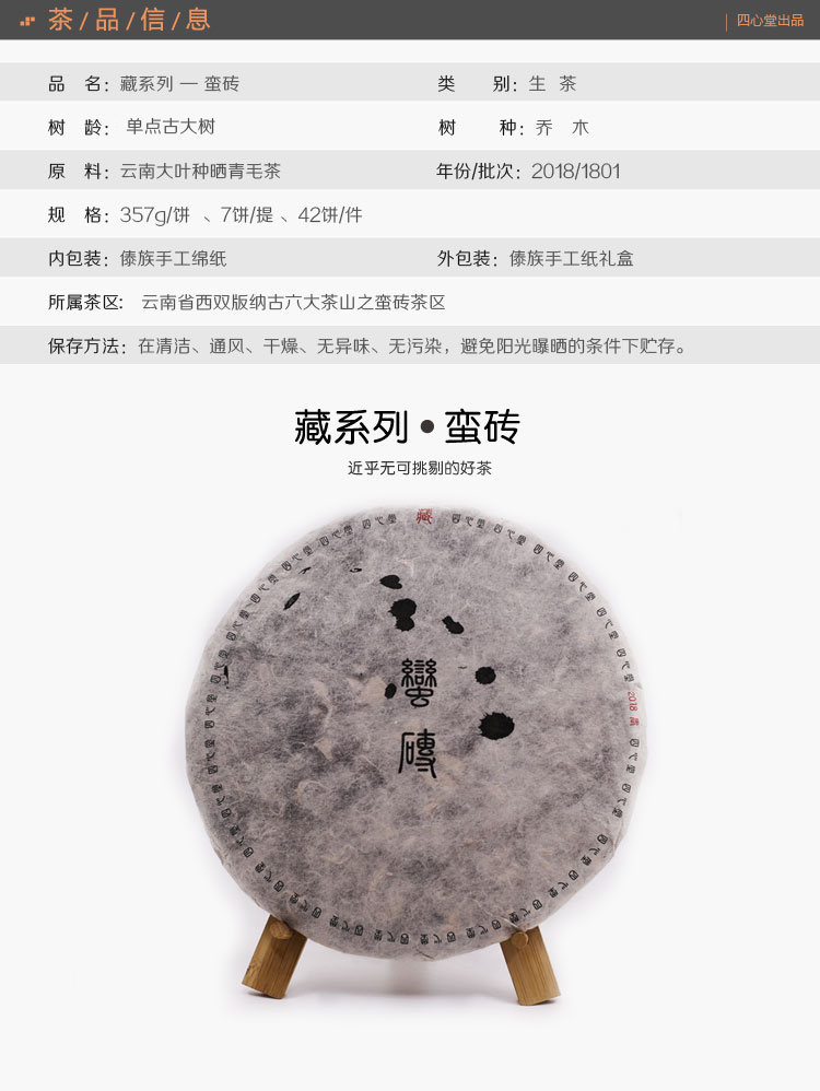 四心堂1801批次 藏系列 蛮砖 357g