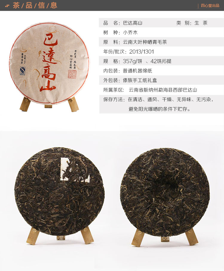 巴达高山 普洱生茶 2013年春 357克