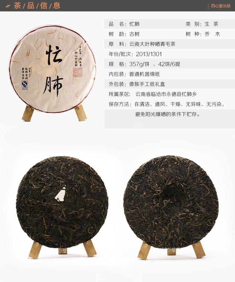 忙肺 普洱生茶 2013年春 357克