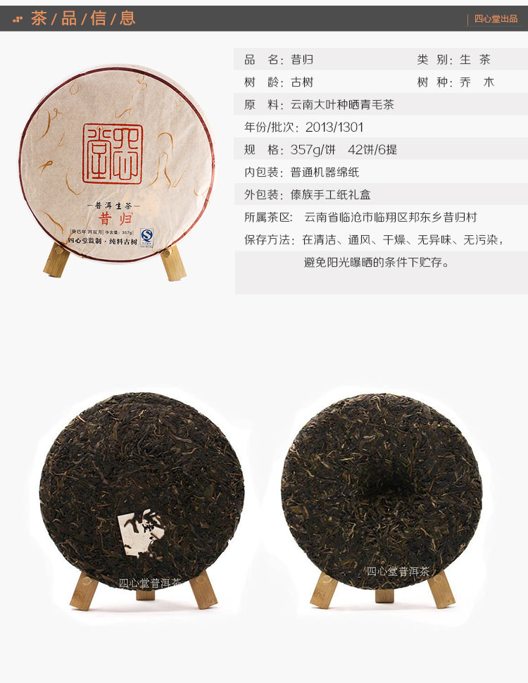 昔归 普洱生茶 2013年春 357克