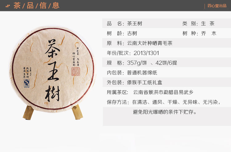 茶王树 普洱生茶 2013年春 357克
