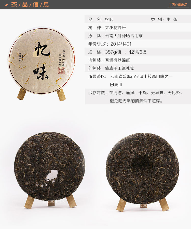 忆味(困鹿山) 普洱生茶 2014年春 357克