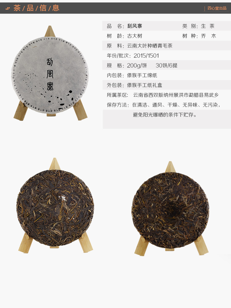 2015年易武刮风寨200g 普洱茶生茶 乔木茶 四心堂