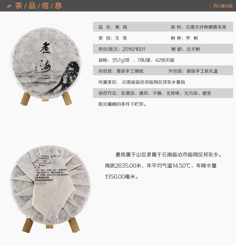煮海(邦东)普洱生茶 2016年春 357克