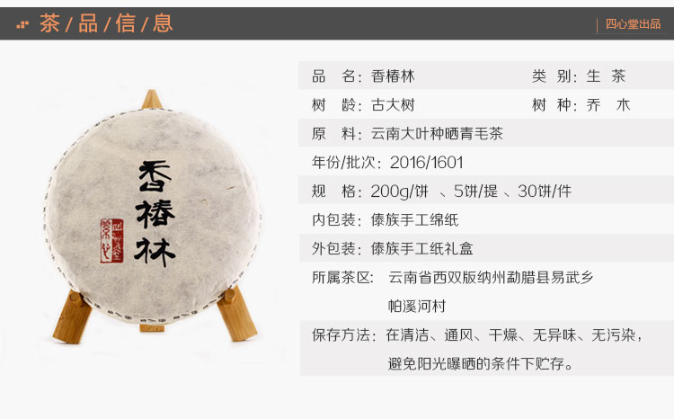 易武茶区香椿林古大树 2016年春茶200克 四心堂心系列?素心