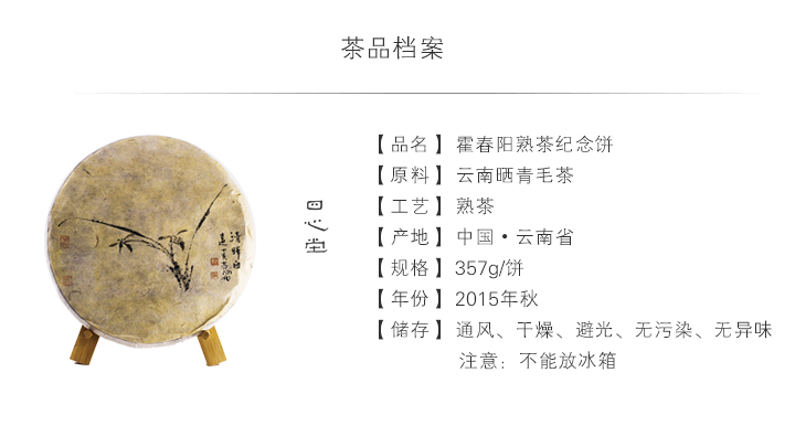 霍春阳 兰花纪念饼 普洱熟茶 2015年秋357克